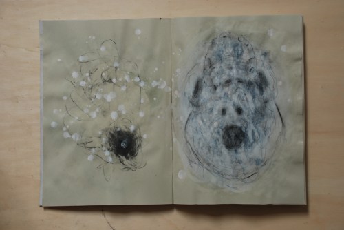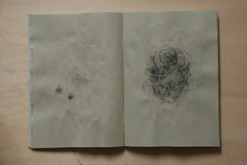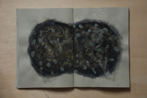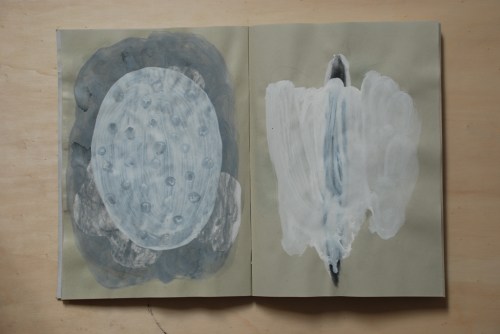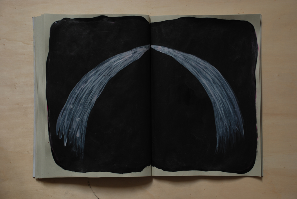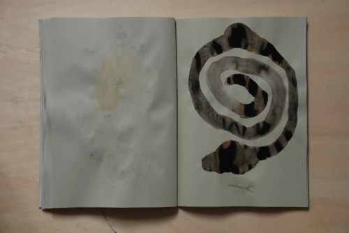 Au fil des jours Xavier Cardinaux peint les pages de cahiers pour le simple plaisir de toucher la matière.