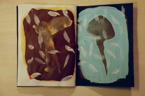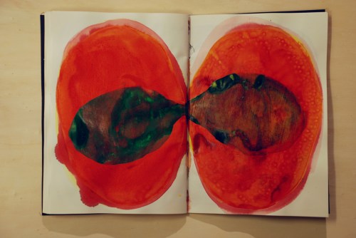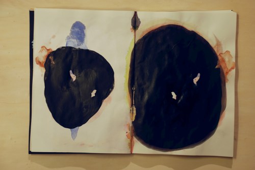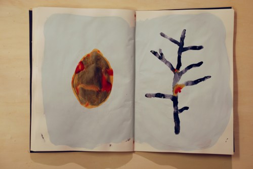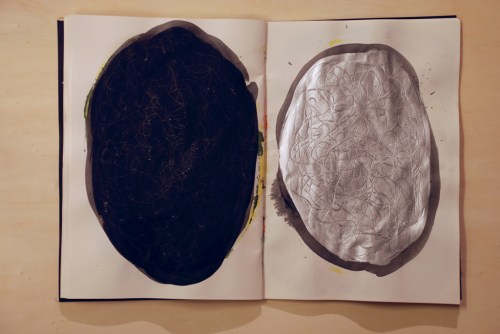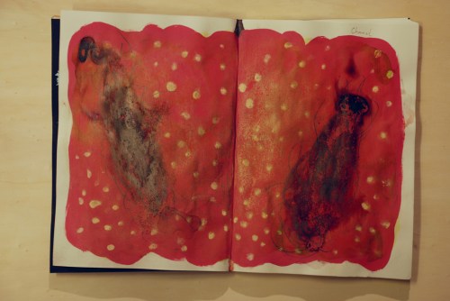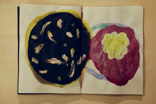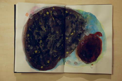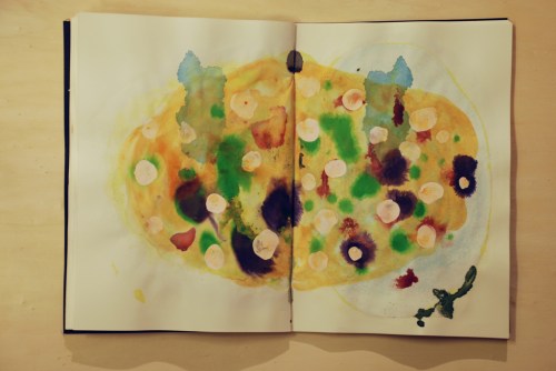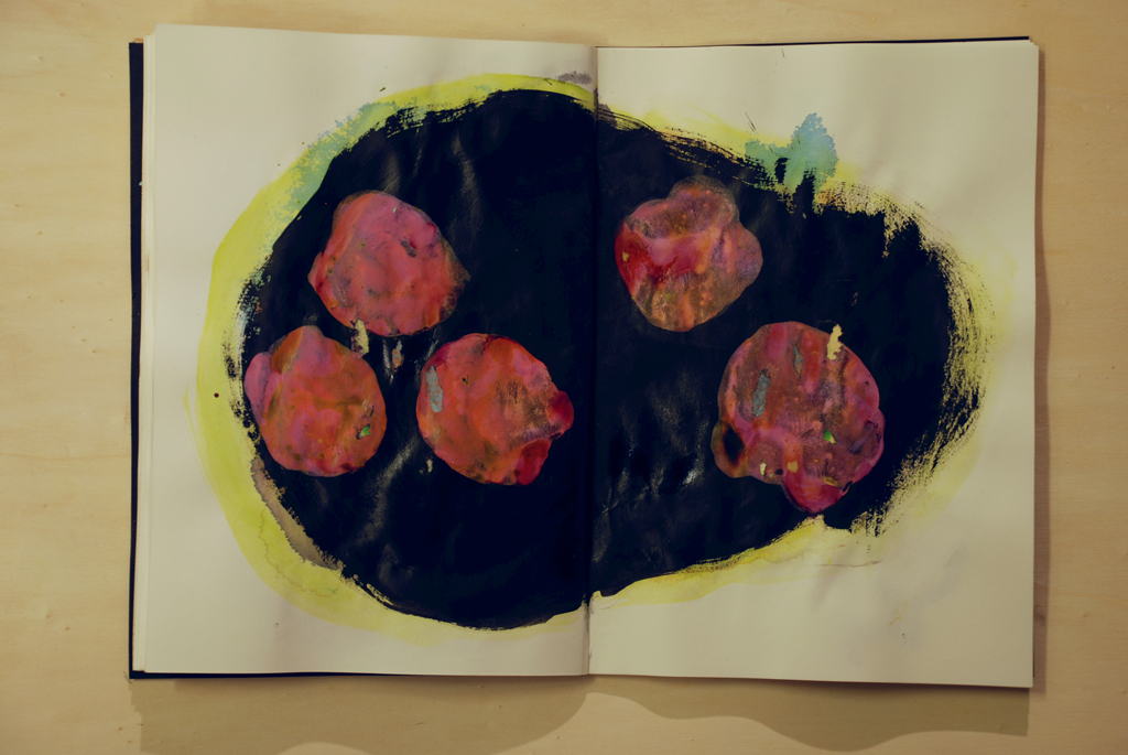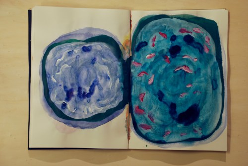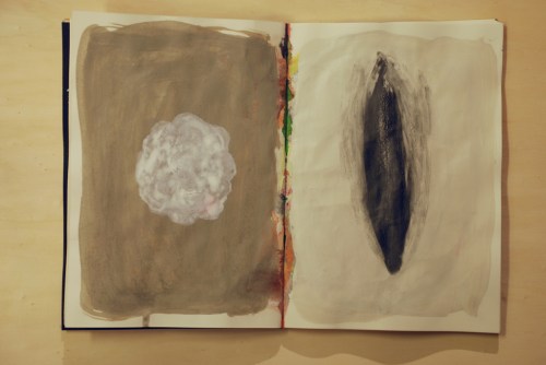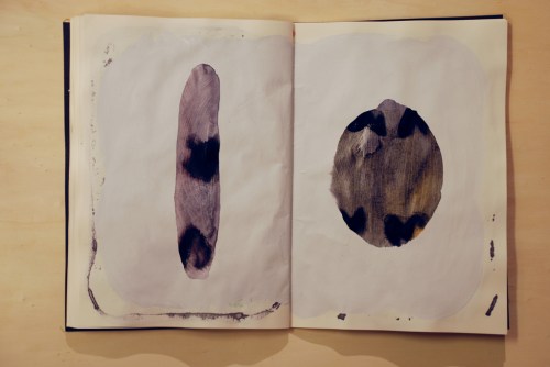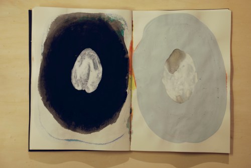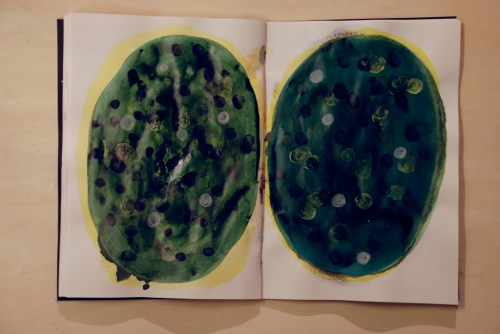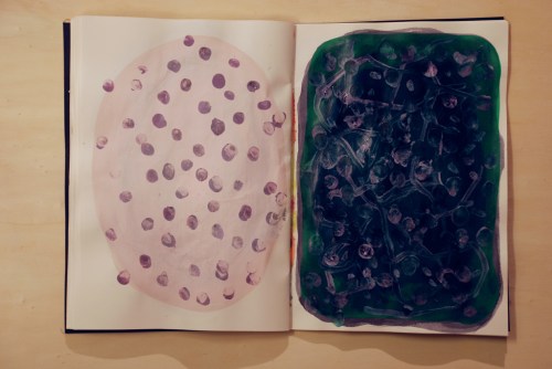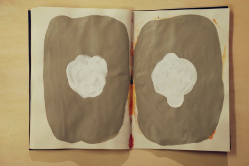 Au fil des jours Xavier Cardinaux peint les pages de cahiers pour le simple plaisir de toucher la matière.