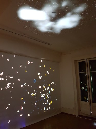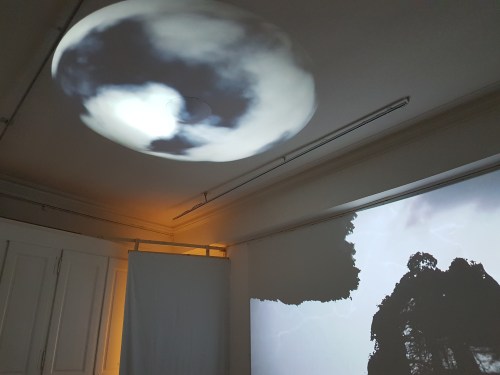 Boucles vidéos 7 minutes environ, installation: dimensions variables (minimum: 500 x 300 x 280 cm).
